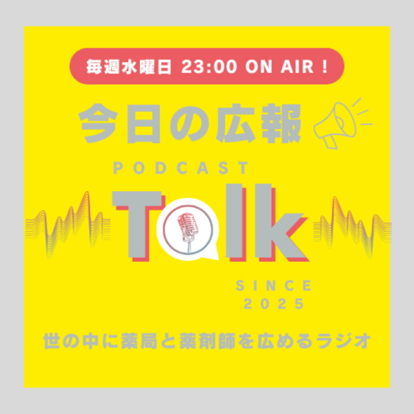 【毎週水曜日更新】 ▼番組概要 薬局広報コミュニティ「今日の広報」(こんにちのこうほう)の採用広報担当のキシモトと薬剤師のばっしーが「薬局×地域」「薬局×健康」「薬局×広報」など、薬局×○○をテーマに、薬局広報としての可能性を深掘りしていく番組です。 #普段は薬局で働く、採用広報担当のキシモトと薬剤師のばっしーがゆるーくアレコレ語りまくる番組です。 ▼番組内容 ・薬局×地域コミュニケーションのヒント ・薬局経営者の想い ・あなたの薬局のちょっといい話 ・採用担当のお悩み相談と裏側 ・薬局×〇〇で面白い!と感じた事例 ・私の地域紹介 薬局で広報を担当する人もそうでない人も、「薬局で働くってかっこいい!」と思ってもらえるようなトピックを紹介していきます。 ”世の中に薬局と薬剤師を広める”を目標に薬局に対してのイメージが少しずつでも変わっていって、薬局に来る人も働く人も明日からちょっと前向きな気... more