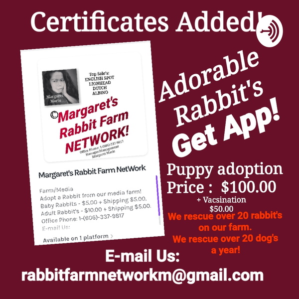 Farm/Media Adopt a Rabbit from our media farm! Baby Rabbits - $5.00 + Shipping $5.00. Adult Rabbit's - $10.00 + Shipping $5.00. Office Phone: 1-(606)-337-9817 E-mail Us: rabbitfarmnetworkm@gmail.com